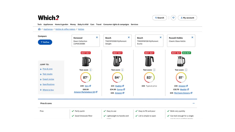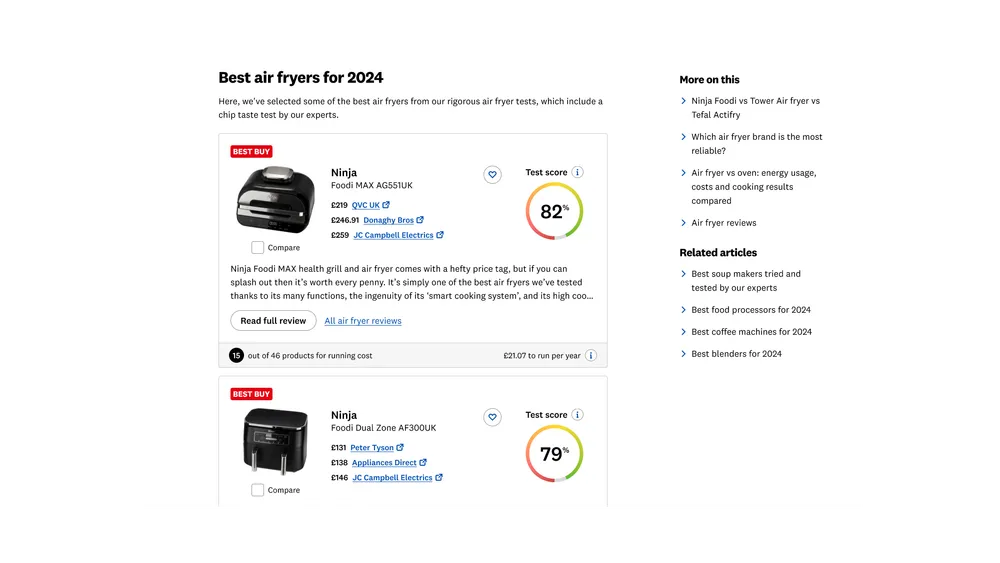 Varying sized opportunities for the product compare tool that increased engagement YoY.